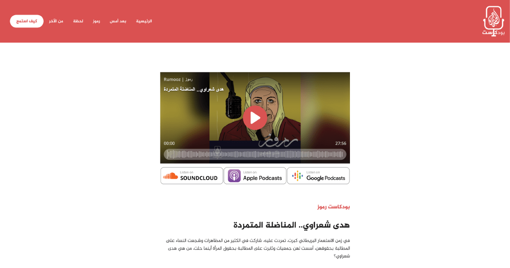Rumooz is a Podcast by Aljjazeera Podcasts that introduces a celebrity in each episode and tells their stories in an engaging way.