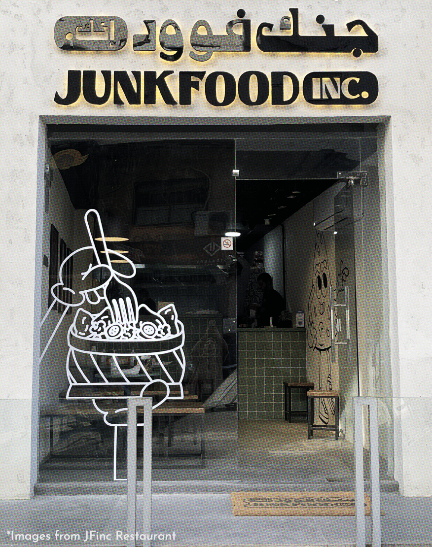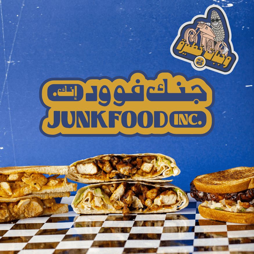 JUNKFOOD INC. is a restaurant in Amman offering international street food dishes. The name JUNKFOOD INC. was provided by the client.